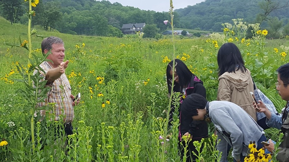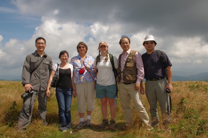 2010年中美联合实习课程首次赴北美进行,图为中美教师在北卡阿巴拉契亚山区。