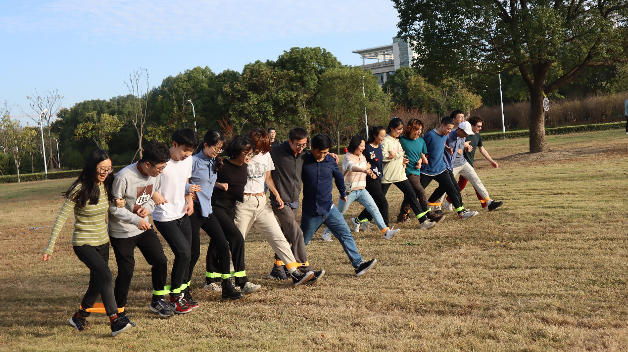 同心击鼓活动考验着团队的配合力以及耐力。为了能持续接住小球,队员之间保持着高度的协调默契,相互鼓励。八人九足要求团队步调一致,尽可能快地走到三十米。对于八人的配合度考验很大,有团队在训练过程中跌倒了多次,但大家仍然斗志昂扬,齐心协力地完成了比赛。