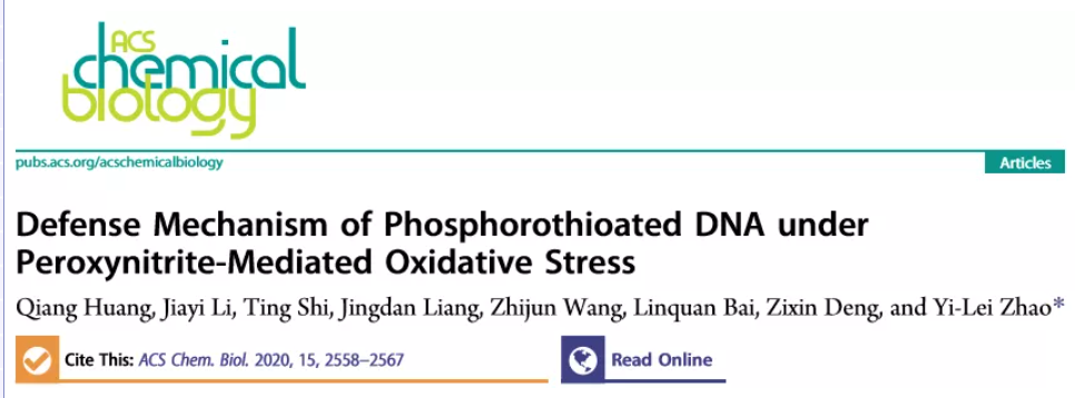 近日,漫画网站 代谢与发育科学国际合作联合实验室赵一雷教授课题组在DNA硫酰化修饰抵抗外源活性氧(ROS)机制研究中取得新进展,以“Defense Mechanism of Phosphorothioated DNA Under Peroxynitrite-mediated Oxidative Stress”为题,在美国化学会期刊《ACS Chemical Biology》发表Supplementary Cover Article论文。第一作者为博士生黄强,邓子新院士团队白林泉教授、汪志军副研究员和梁晶丹副研究员等参与本研究。