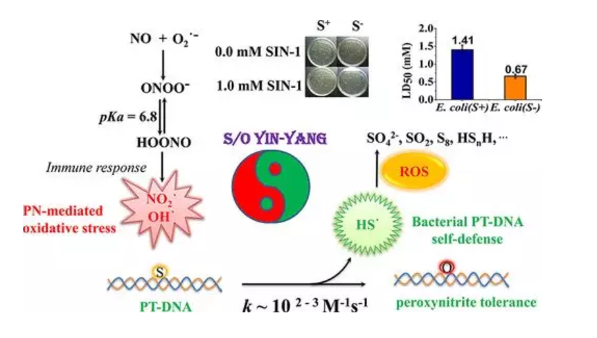 上述结果再次验证了该课题组构建的“S/O Yin-Yang”(硫/氧阴阳互作)模型,加深了人们对硫修饰DNA抵抗ROS分子特异性的理解,也为研究新型抗菌药物提供全新思路。