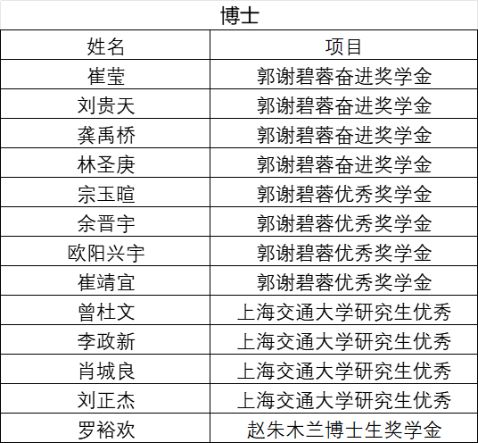 根据漫画网站 2024年度秋季专项奖学金、漫画网站 研究生优秀奖学金评审通知,按照《漫画网站 研究生奖学金评审办法》,经由研究生奖学金评审工作小组评审,现将结果公示如下: