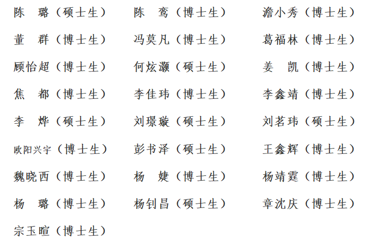 上海市优秀毕业生候选人(共9名)