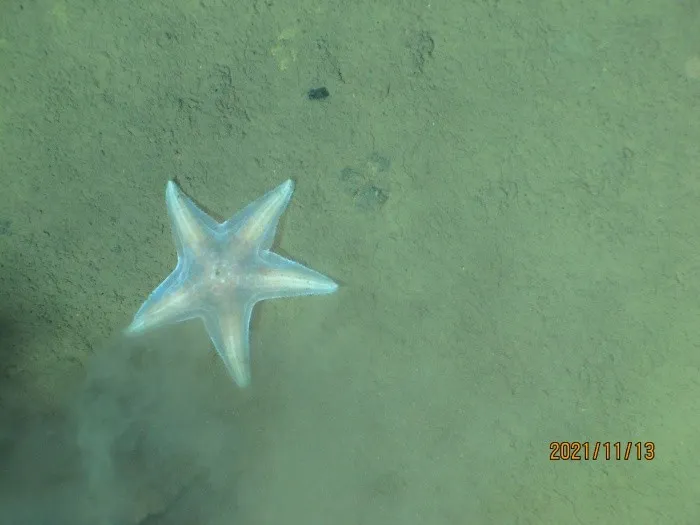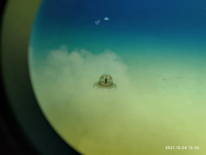 研究人员在深海底部采样期间拍摄到的深渊水母