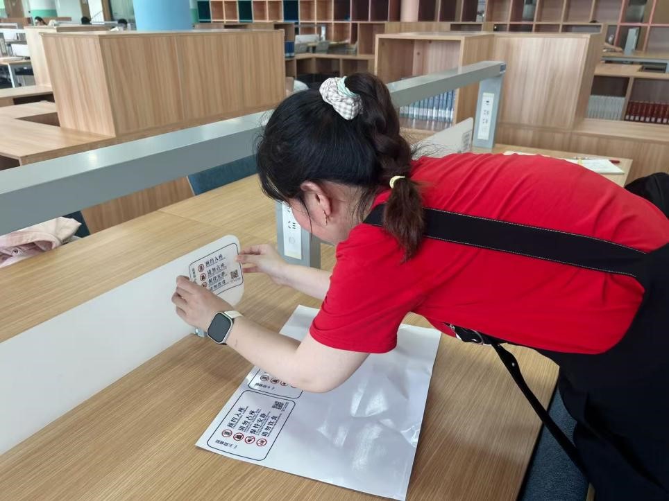 图书馆读者服务中心张吉老师对本次志愿活动提供了指导。她表示:“长期以来,馆内自习座位的管理一直是一项重点、难点工作。通过张贴和维护提示标语倡导文明就坐,可以让图书馆的座位资源利用率大大提升,更好地服务每一位来学习的同学。”