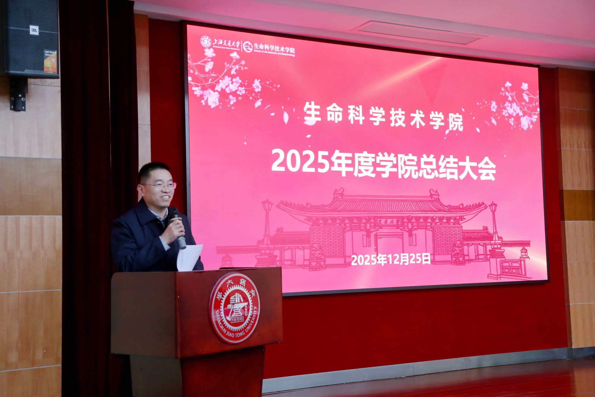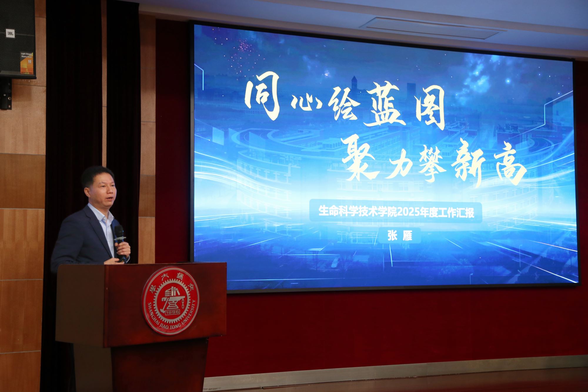 院长张雁做学院工作总结并进行个人述职。他系统介绍了2025年度学院整体工作情况,着重汇报了学院在学科基地建设、师资队伍建设、人才培养、科学研究等方面的亮点工作和重要突破。他表示,未来学院将面向医药健康、粮食安全、生物制造等领域重大需求,主动对接生物医药先导产业,抢抓发展机遇,全面深化改革,前瞻布局学科重塑与能级提升,建设中国特色、世界一流的生命科学创新高地。