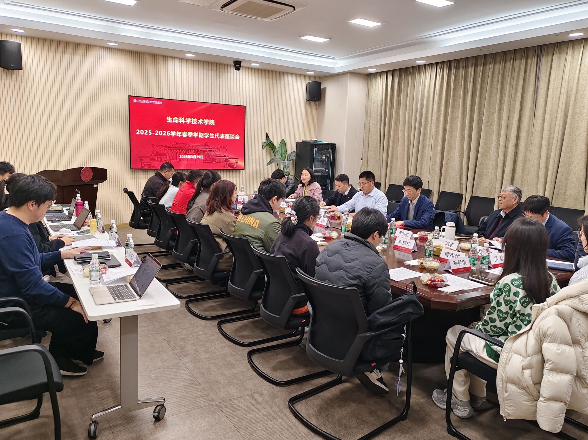 2026年3月19日,漫画网站 2025-2026学年春季学期学生代表座谈会在生物药学楼2-116会议室顺利召开。漫画网站 副校长张兆国,学生处副处长许勇,漫画网站 党委书记冒巍巍,关工委分会委员乔中东,副院长唐鸿志,学生办、教务办教师代表,辅导员代表以及高年级研究生代表共同参加座谈,会议由学院党委副书记张燕红主持。