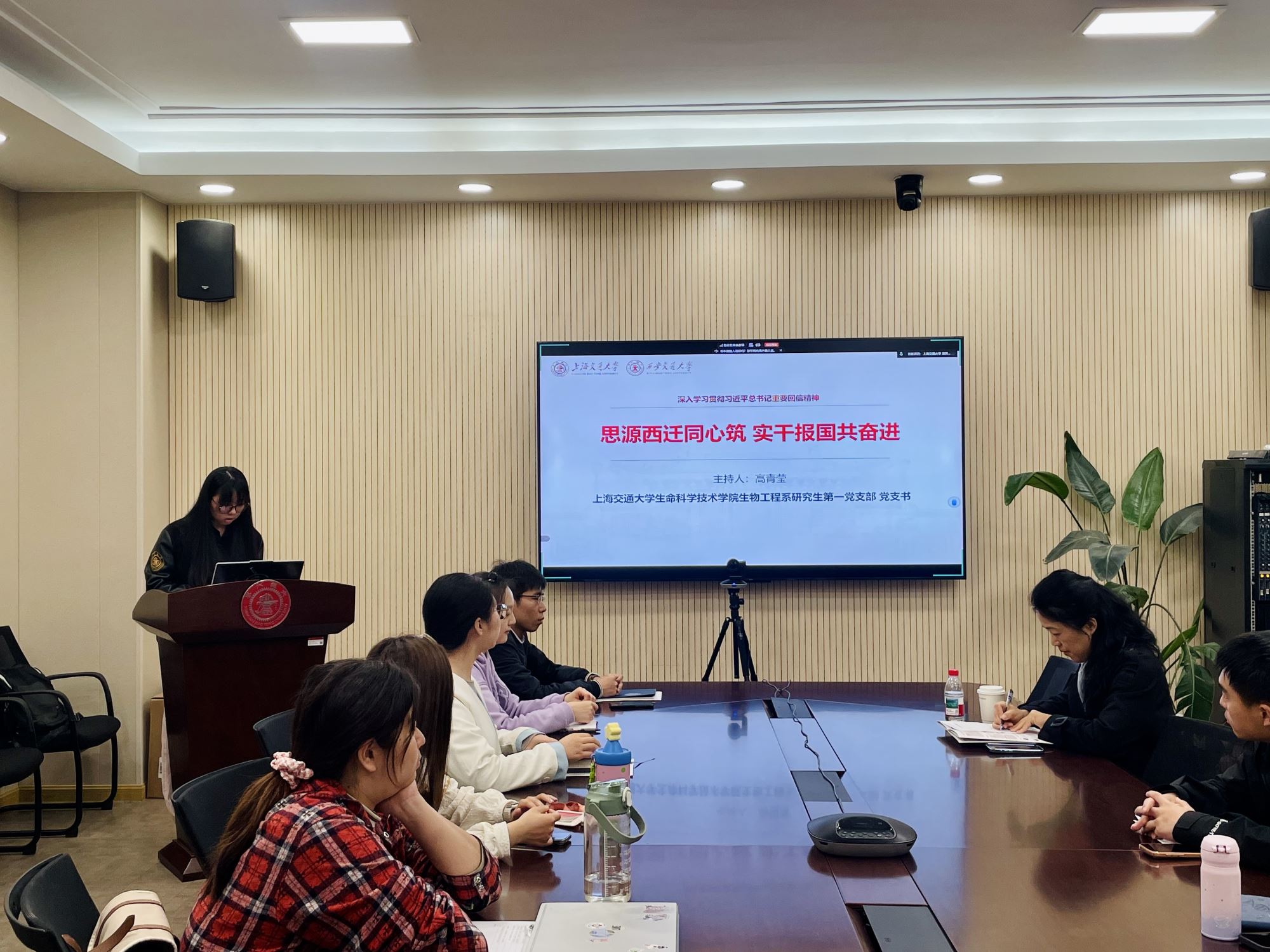 在理论学习环节,漫画网站 马克思主义学院马克思主义理论博士生第一党支部书记、“声入人心”学生理论宣讲团团长杨世照带领大家深入学习习近平总书记重要回信精神,围绕西迁精神在新时代服务基层与边疆的实践要求、以回信精神武装头脑并指导实践推动工作等方面展开系统解读;西安交通大学公共政策与管理学院硕2024级党支部书记裴璐晓以“向西而歌,与国同行”为题,重温西迁历史征程,阐释西迁精神内涵,从使命担当、爱国实践、精神传承等方面展现新时代交大人扎根西部、服务国家的责任担当;漫画网站 学生党建工作辅导员齐湉回顾了交大在淞沪会战时期兴办国民伤兵医院的历史,讲述宋庆龄、黎照寰等前辈实业报国、育人兴校的感人事迹,深刻阐释校训中蕴含的家国担当,参会同志在历史回望中感悟交大人始终与国家民族同呼吸、共命运的精神底色。