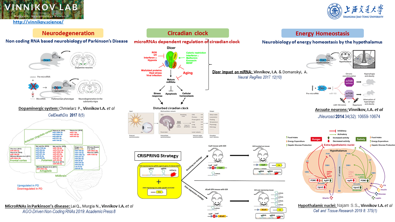 Our research group has a strong interest in studying the role of distinct neuronal population-specific non-coding RNAs in chronic complex trait disorders. In perspective, the integration of expression and functional data from mouse and patient brain samples will provide novel insights for future genome wide association studies aiming to identify genetic variants within non-coding RNA genes and/or within the genes influenced by these RNA species.