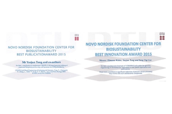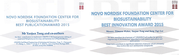 • Best publication award of Novo Nordisk Foundation Center for Biosustainability, 2015