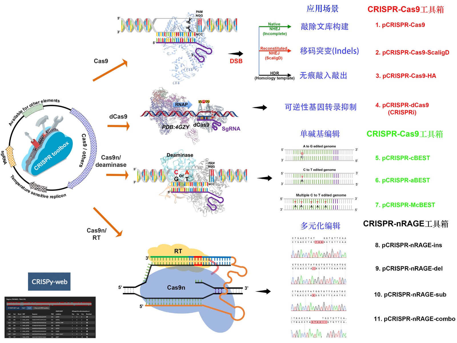 基于CRISPR等的合成生物学工具深度开发,动态转录翻译调控平台的搭建等。
