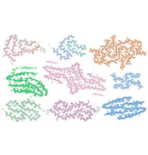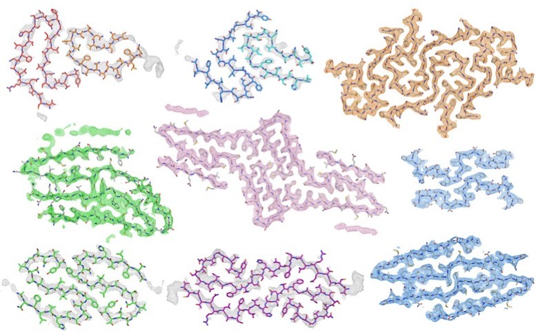 通过使用冷冻电镜螺旋重构的方法解析与疾病相关的淀粉样纤维(一种蛋白质聚集形式)的近原子分辨率结构,从而探究其形成纤维的分子机理,以及研究这些蛋白的纤维化在相关疾病发病过程中所扮演的角色。