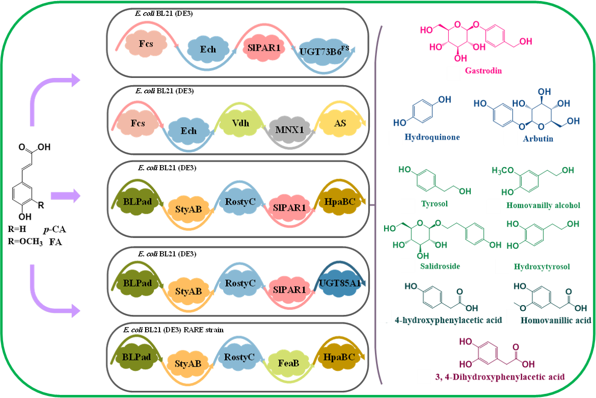 Mingtao Zhao, Xulin Hong, Abdullah, Rulin Yao, Yi Xiao*. Rapid biosynthesis of phenolic glycosides and their derivatives from biomass-derived hydroxycinnamates. Green Chemistry, 23, 838-847