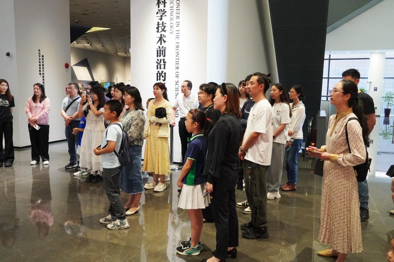 座谈结束后,党员同志们前往钱学森图书馆开展主题参观活动。在图书馆外广场“钱学森图书馆”石刻前,全体党员高喊统一口号:“百年传承,初心如磐;红色血脉,薪火相传”,致敬交大第一个党团组织成立100周年。随后,在讲解员的带领下,全体成员深入参观图书馆展厅,通过一张张图片、一件件实物,近距离感受钱学森先生爱国奉献、勇攀科学高峰的伟大精神。