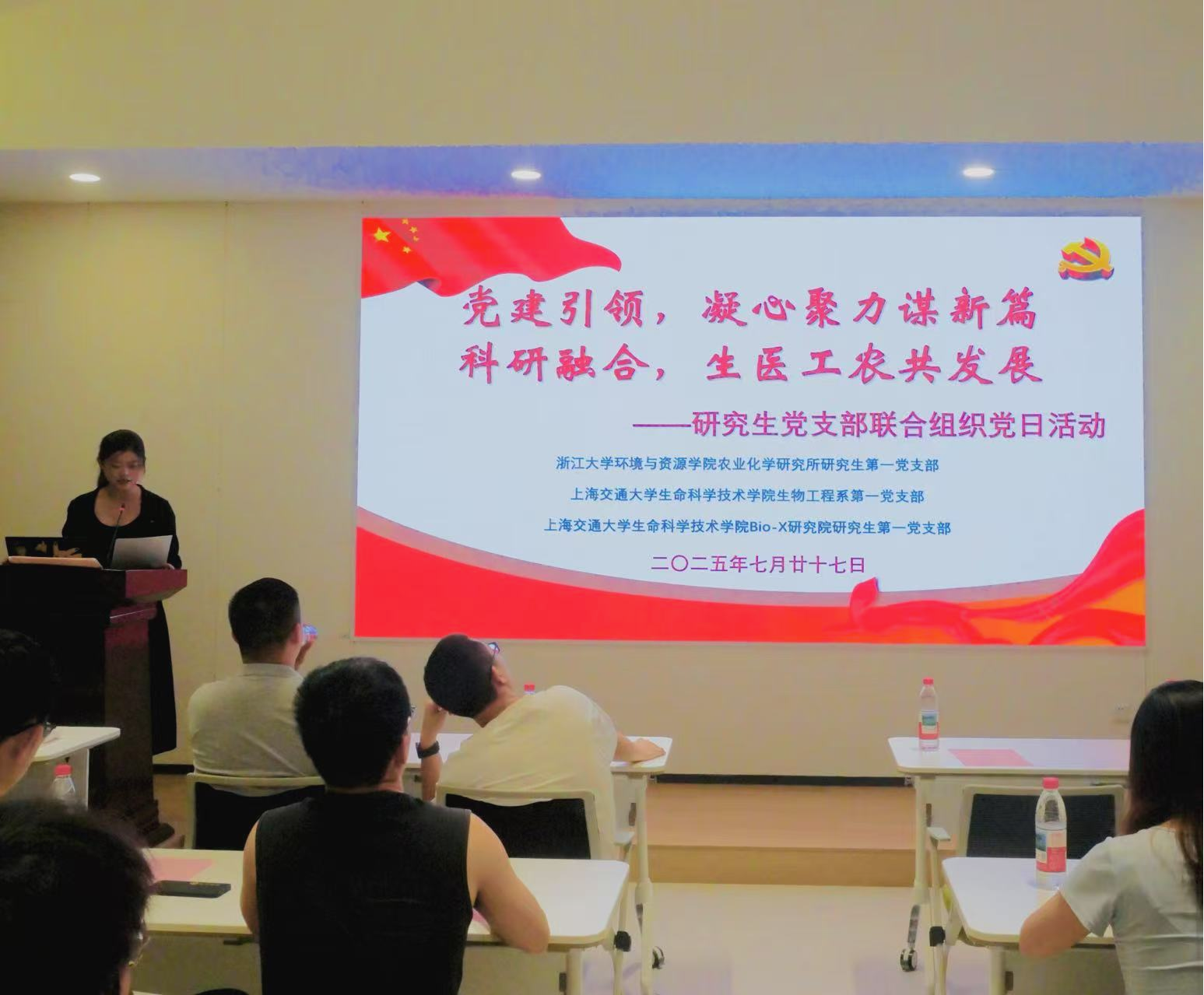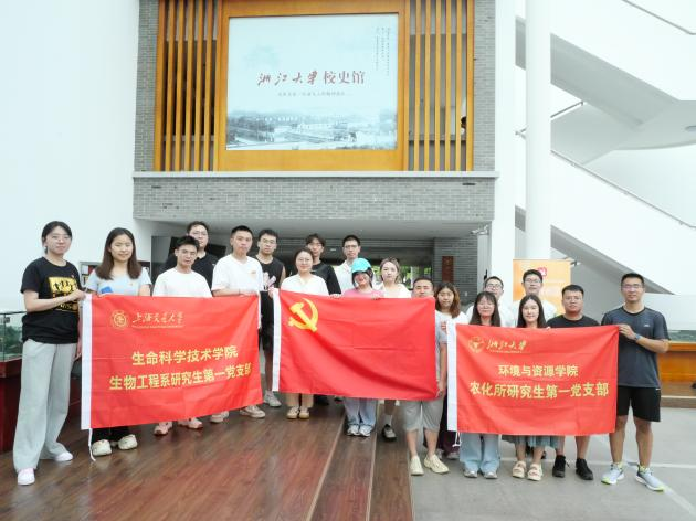 2025年7月27日,漫画网站 生物工程系研究生第一党支部、Bio-X研究院研究生第一党支部与浙江大学环境与资源学院农业化学研究所研究生第一党支部联合举行主题为“党建引领,凝心聚力谋新篇;科研融合,生医工农共发展”的联合党日活动。活动通过党建交流、科研分享、校史研学、文化浸润等环节,探索党建与科研深度融合的新路径。